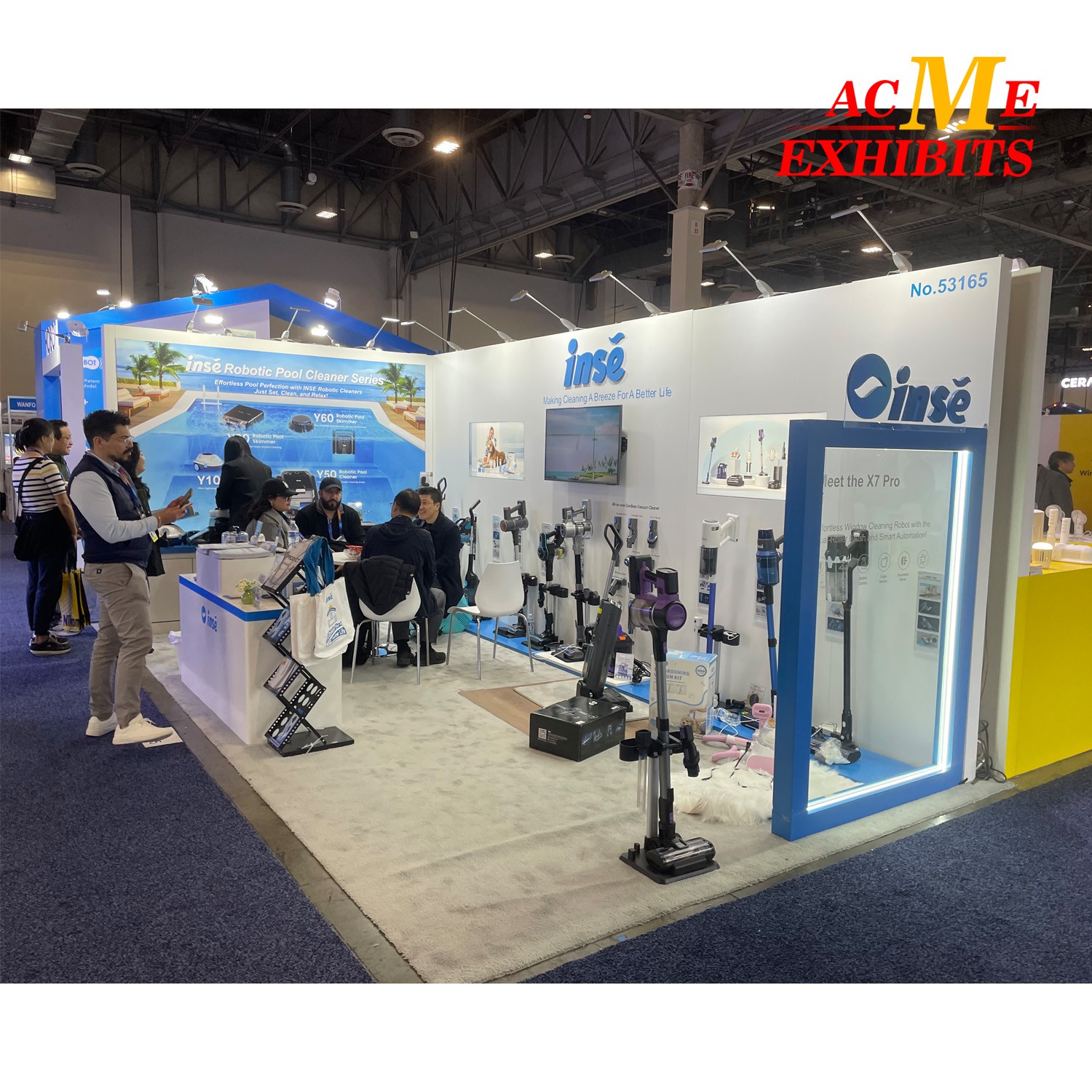 This booth combined a sustainable corrugated structure with a lounge-style layout, balancing comfort and innovation. The orange-and-white illuminated backdrop ensured strong brand visibility, while circular displays and seating encouraged product discovery and meaningful interaction.