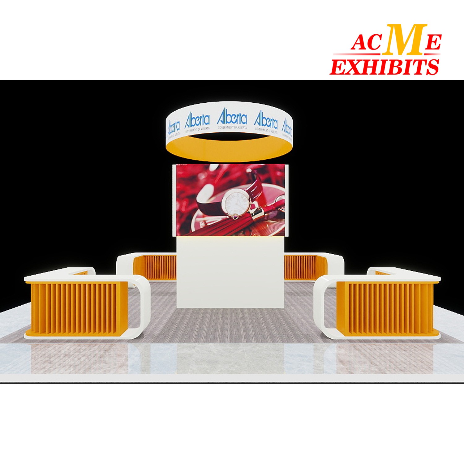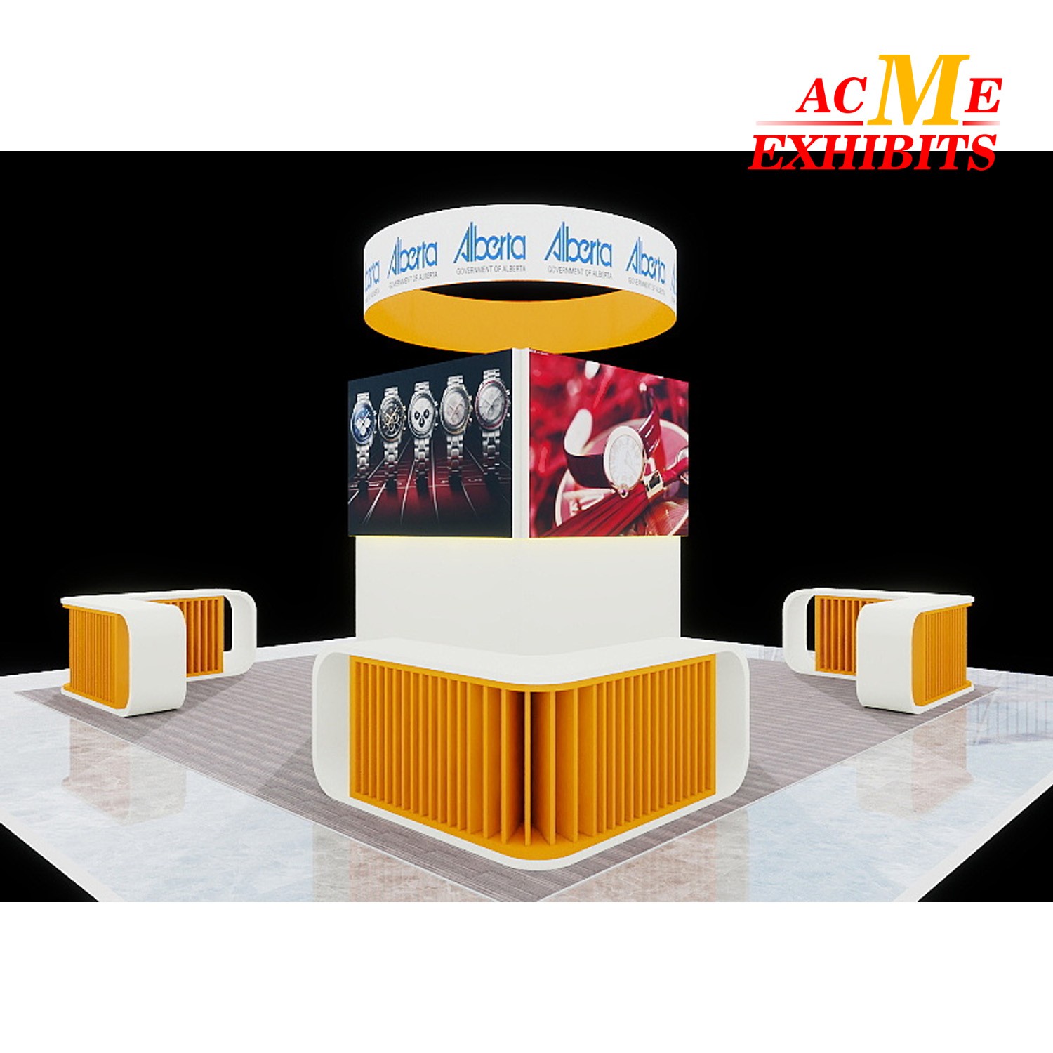 Product Showcase: The central LED screen dynamically demonstrates the features of the core products.