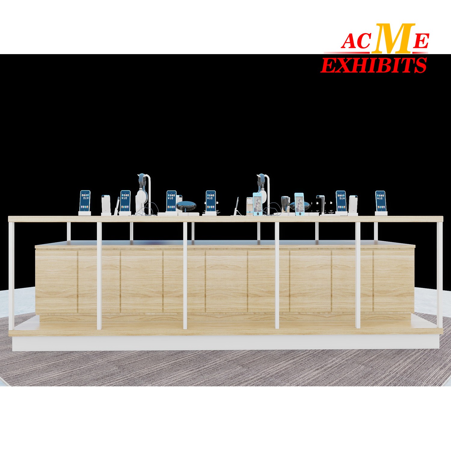 l Functional Storage: Hidden cabinets below keep brochures, packaging, or backup items neatly stored.