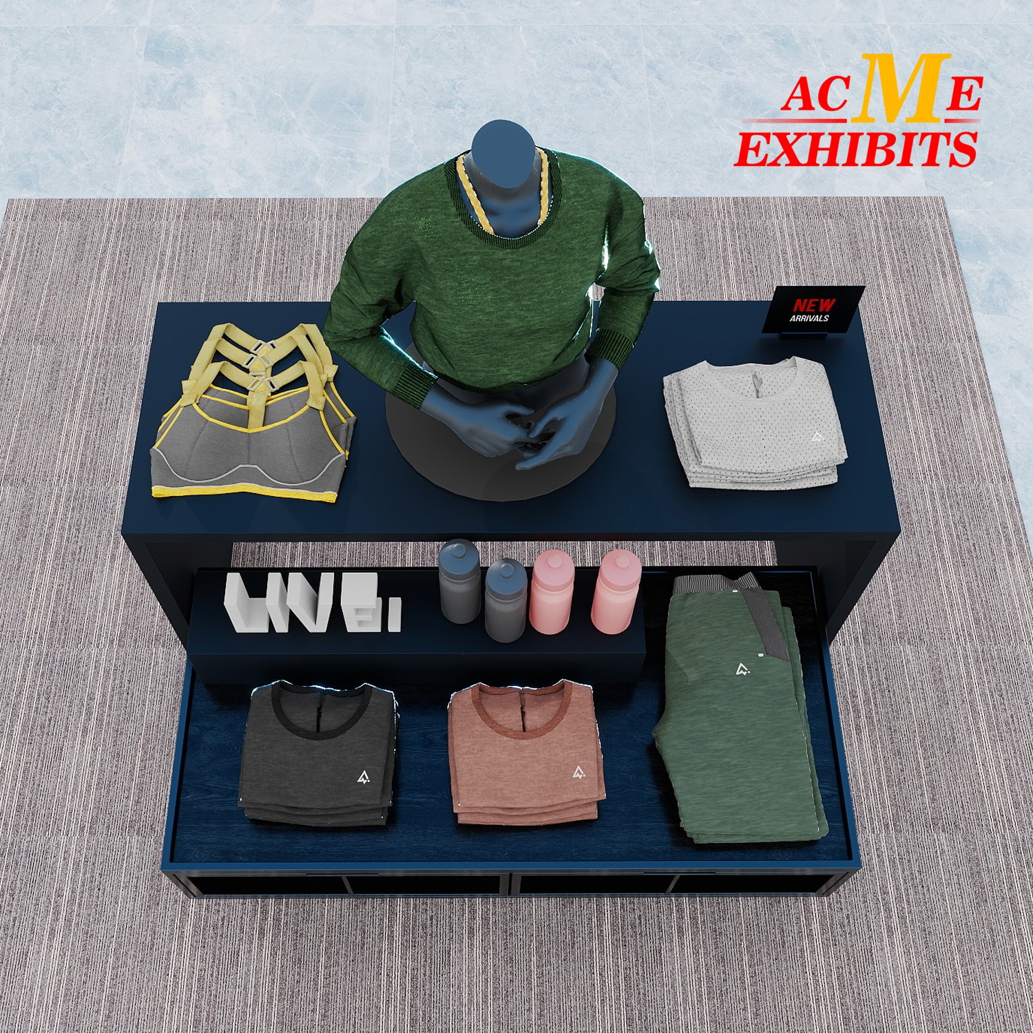 l Ample Display Space: Multi-tier shelving provides room for folded apparel, mannequins, and promotional props.