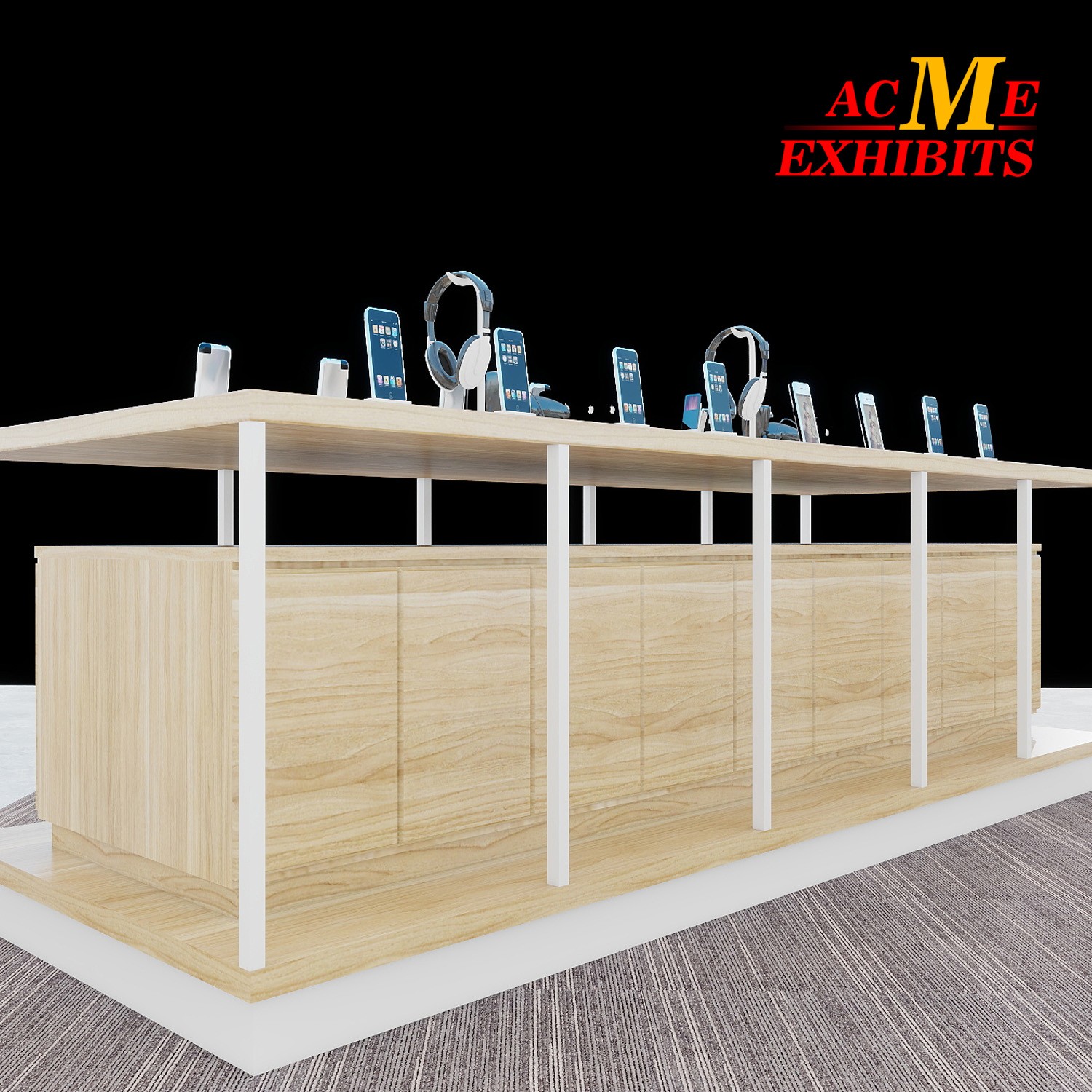 l Functional Storage: Hidden cabinets below keep brochures, packaging, or backup items neatly stored.